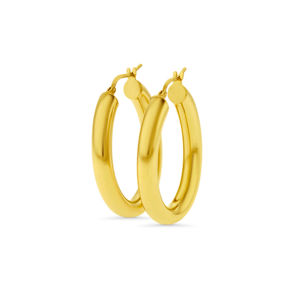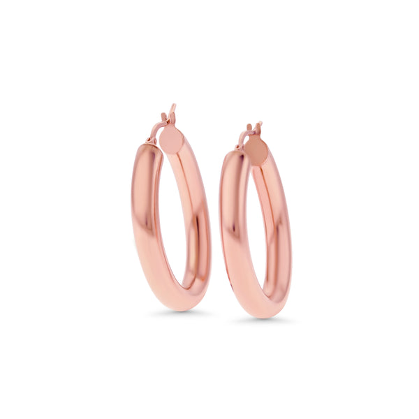 Oval style hoops with a plain finish. The hoops have a latch style closure.